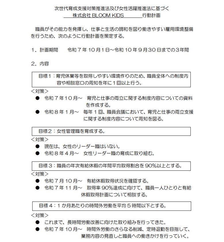 このたび、次世代育成支援対策推進法及び女性活躍推進法に基づく行動計画を策定しました。
